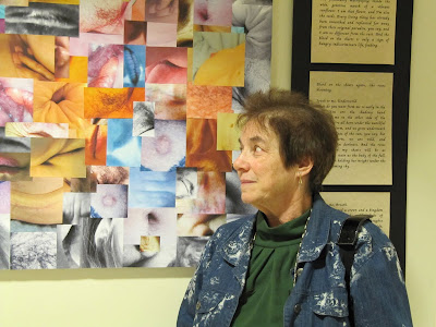 Wow, I just realized that I never wrote about the opening. A reviewer from Gazette.net interviewed me, as well as "my poet," Tiziana Lohnes - and wrote up a piece for the web. I believe Claudia Rousseau will be writing about the show too - she's a fine writer and a sharp art historian - writes for the Gazette as well - the paper one. I don't even know if she'll like our piece, but the show is worth her time - so much edgy and sophisticated work. Fresh air, if I didn't say that already! The opening included poetry performances, supported by dancers and musicians. Honest to god cultural nourishment, right in my "hometown" as they call it here. I'm putting in a photo of our piece, which is called "Shared and Open," plus me with a detail. Comments welcome.
